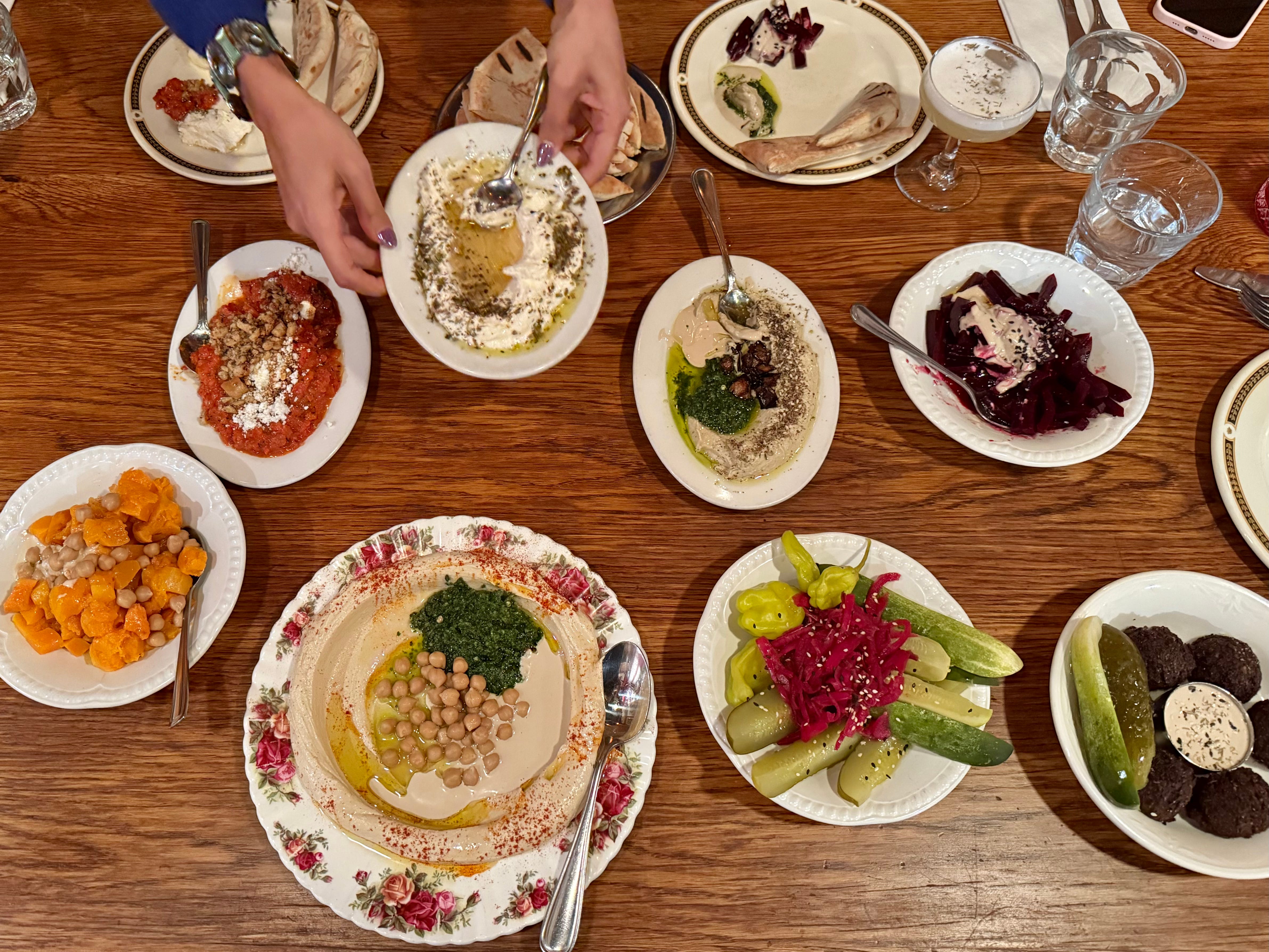 We were already quite full by the time the mains arrived, but that didn’t stop us. The fattouche was creamy and generously doused in feta and all sorts of veg; the roasted cauliflower hid melted halloumi at its center; the roasted potatoes were crisp; and (my personal favourite) the baked butternut squash — sweet, spicy, and perfectly tender — was enjoyed with leftover dips.
